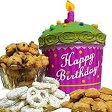 There is no better way to say "Happy Birthday!" than with this cheerful cupcake gift box with plush lid and candle. It's filled with everyone's favorite cookies and treats to enjoy on their special day. After the goodies are gone, the clever gift box, great for storing keepsakes, or using for future birthdays. Includes: Heavenly Gourmet Chocolate Chip Cookies, Heavenly Gourmet Butter Shortbread Cookies, Confetti Chocolate Drizzled Toffee Popcorn, White Frosted Pretzels, presented in a cupcake gift box with plush “frosting” lid and candle. Each basket is hand crafted with attention to detail and tied with a bow for presentation, ready for gift giving. Please mark GIFT during check to include a personalized gift message to convey your best wishes. This is an original gift basket arrangement designed by Art of Appreciation Gift Baskets Happy Birthday Cupcake! Cookie and Treats Gift Box Say "Happy Birthday" with this unique, cupcake-shaped gift basket from Art of Appreciatio