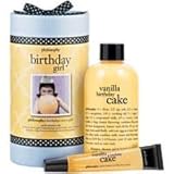 every birthday girl wants cake. give her birthday girl, featuring vanilla birthday cake shampoo, shower gel and bubble bath 8 oz. and vanilla birthday cake lip shine .5 oz. philosophy captured the fresh-baked scent in this extra rich and creamy, 3-in-1 shower gel and very emollient, high-gloss, high-flavor lip shine. she can have her cake and give sweet kisses too!